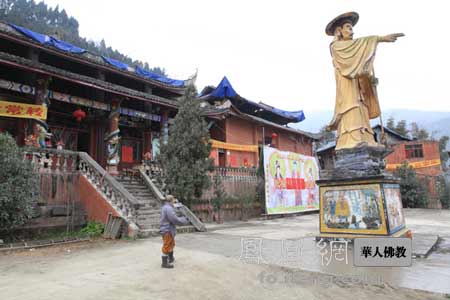 走进广莲寺,最显著的标志就是树立在寺院**的大禹像。由于地处羌族聚居地,广莲寺并不单纯是一处佛教寺院,其主殿禹王殿,主要供奉着大禹神像。殿后还供奉有道教的玉皇大帝、太上老君等神像。