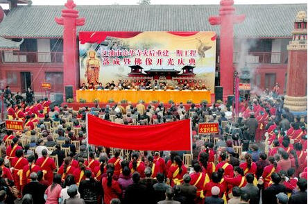 2008年8月21日,经请示,江油市委统战部部长李代钰率领市民宗局和青莲镇党政领导来法华寺共商重建大事,并会见了毛勇居士,对毛勇居士抗震救灾、捐资修庙的精神给于了高度评价,深表感谢。会议要求要将法华寺建设成高标准、高质量,具有现代佛教文化特色、并与旅游观光相结合的江油一流寺院,要求将泥塑佛像全部换成铜铸佛像,同时还成立了“法华寺重建项目指挥部”,由市委统战部副部长、市民宗局局长李波任指挥长,青莲镇党委李代江任副指挥长,负责协调解决有关事宜,充分体现了党和政府对法华寺灾后重建的重视。