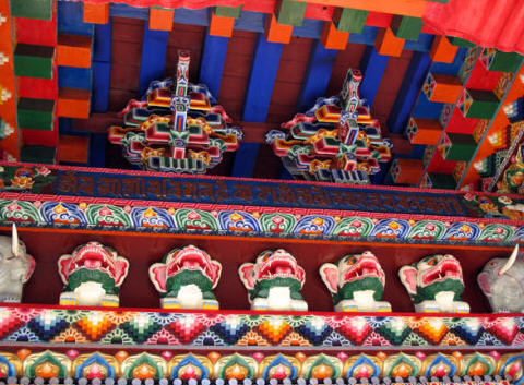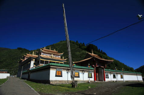 新康猫寺历史悠久 新康猫寺位于成(都)~阿(坝)公路347公路处,原地址在康乐乡老康猫村,因火灾迁到现在的壤口乡萨木隆村。藏语称:康猫贡巴,意思为红墙。康猫寺的全称是应为:“智空具勒寺”,信教群众含上、中、下壤口和卡尔拉的老百姓。壤口部落是松赞干布时代,从阿里三围之一的“壤口围”中派来的此地驻防的军队之一的小部分。据传当时称为壤口7户, 有一千多年的历史。康猫寺是宗喀巴大师早期弟子的查古·阿旺扎巴创建的108座寺院之一,也是其中最后创建的8座寺院之一。