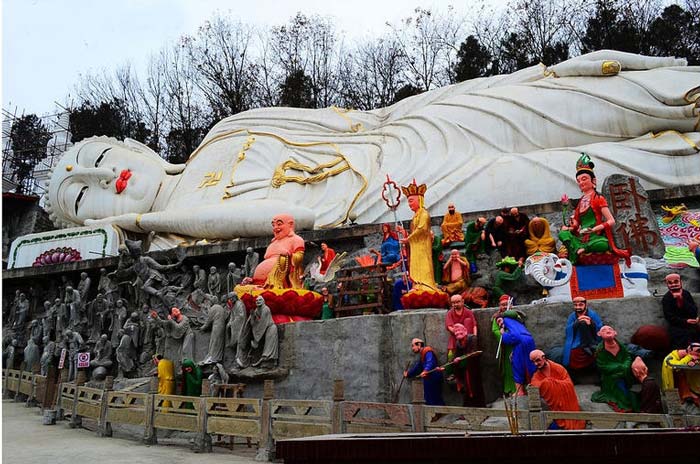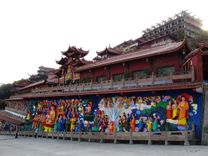 常明法师主持的四川省绵阳市圣水寺,位于绵阳城西涪江右岸的塔子山风景区,自古以龙泉圣水著名,最初名“甘泉寺”,其历史可上溯至唐永徽年间(公元650~655年),距今已历1300余年,堪称绵阳市历史最悠久的古刹之一。据《绵阳县志》记载,赤壁古有《圣水龙湫记》摩崖题刻,其文云:“名山院西崖,壁下有龙湫焉,祷雨辄应。唐永徽中,名‘甘泉’,元曰‘阜名泉’,明曰‘圣水’。明正统元年(公元1436年)建寺,因以名之。”圣水寺观音殿后崖壁下,“龙湫”至今尚存,清泉常满。1991年,圣水寺被列为四川省重点寺院。