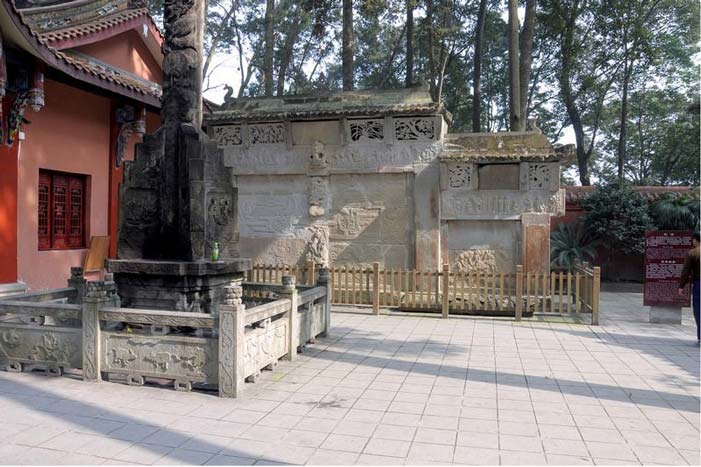 登上青城三十六峰,遍览一百零八道风景,你会发现味江河谷缠旋之一峰四季苍翠、地脉秀丽、山水清奇,此山名曰青峰山,闻名海外的青峰山普照寺即着落其中。沿着而今的景区大门拾阶而上,古树深幽、夹路松篁,左有龙王塘的水泉滴答作响,右有山石回头层层环抱,豁然开朗间深山捧出了梵宫普照!佛坐定中心,如花叶天香。该寺自清康熙甲子年诛茅开基数椽,到雍正七年始有心莲和尚由昭觉寺来此挂单,因见寺左有先朝已故僧人碑塔,知为古寺属禅宗临济一脉,遂发心重振。其九世祖心莲和尚始为开山祖师,十世传真、十一世海汶均能守成;十二世印广与师兄印宗及徒正文勤苦积累、协力经营;法堂,精舍,斋寮以及宝塔金碧木石次第修饰,一跃成为蜀中丛林后起之秀。到了十三世正文、正献祖师时代更是广大佛门,请得圣旨传受三堂大戒。咸丰初年传十四祖灵峰又置田两千亩,属庵二处,及至建国初年,寺内殿宇僧舍大小24院,房屋365间。近三百年的苦心耕耘,使青城山的佛教建筑以普照寺的建筑最有特色,她依山傍水构思奇特,其规模之宏伟,布局之精巧,与佛教经典及浮屠灵异结合之紧密,实属罕见!据重建藏经楼碑记载,咸丰初年,即于是冬,天示神奇,山裂石出,不劳雕琢,不烦辇运,自致良材以显神迹……幸存建筑藏经楼,据今三百年余,由四十七根大青石和一根小杉木构筑而成,取其“物无尽善”之意。其石柱上精工雕刻的文人楹联,书法,佛教故事人物依然苍颈有力,栩栩如生,屋顶上传说中有避尘珠故而终年不落树叶;楼侧有石雕普同塔全部用青石板嵌合而成,制作精美,造型独特,雕工颇为绝妙!惜乎文革中(1972年)普照寺浩劫难免,被拆毁大部,仅存藏经楼及周围建筑共61间。普照寺原始的宏伟格局虽大部分被毁,但藏经楼及船形石舫式的普同塔,对于研究佛教文化及建筑仍具有较高的价值。