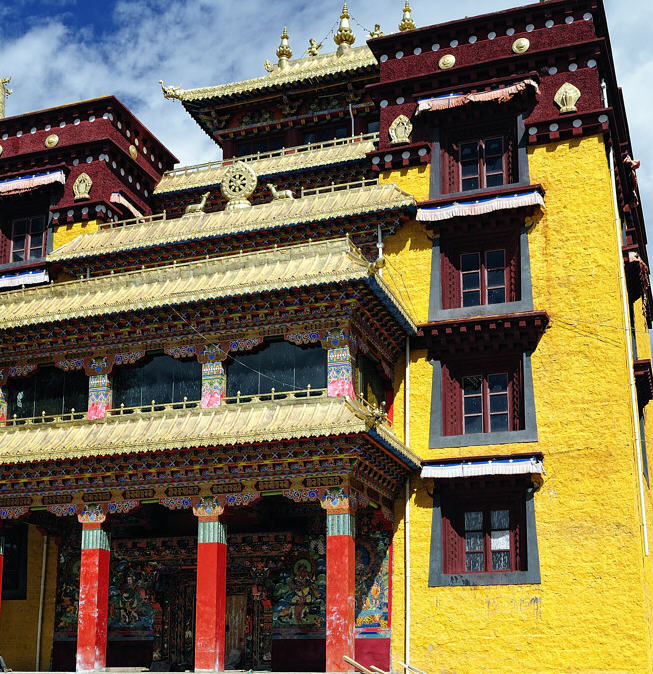 经历年扩建,到寺主二世香根时期,该寺已有佛殿、经堂等20多座主建筑和20多座活佛宫室,400多座僧舍,起伏错落,形成一组独特、严谨、华丽的建筑群落,僧侣近4000人,在整个藏区声誉极高,成为康巴地区藏传佛教格鲁派的圣地。
