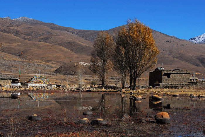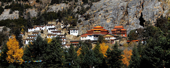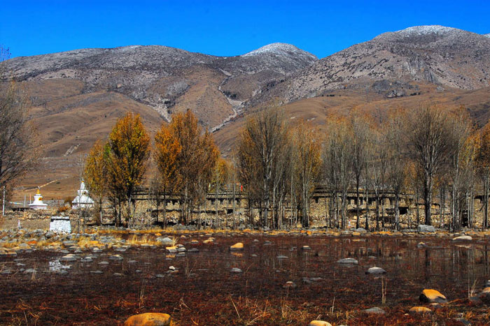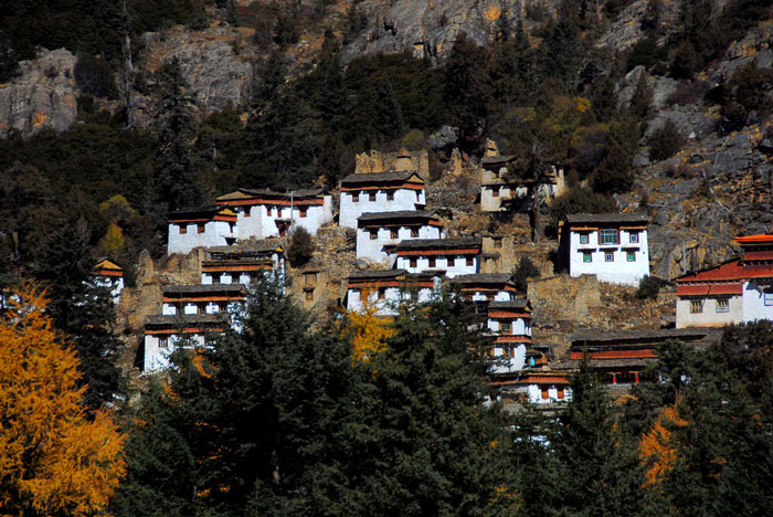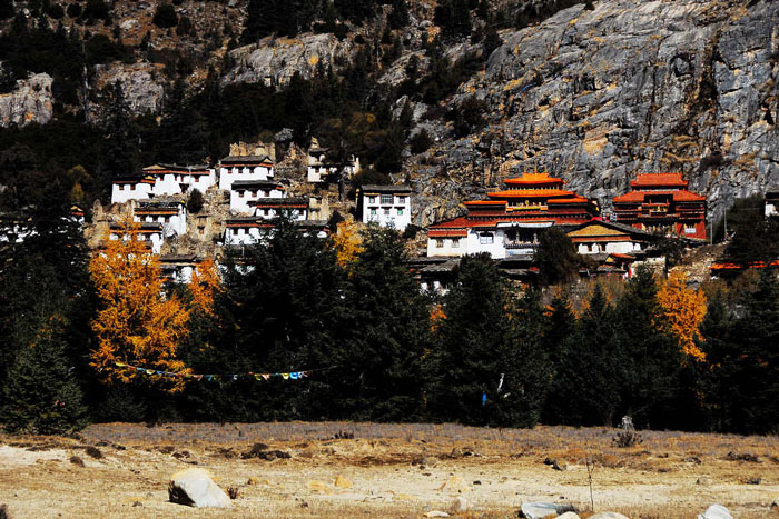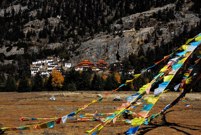 都松钦巴修造的寺庙要象在绝壁上的飞鸽,二弟说修建寺庙要象睡卧森林的美豹。三弟说修建的寺庙要象草地里奔跑的狐狸,最后照老大和老二的意见修建了蚌普寺,大家看看,眼前的蚌普象不象绝壁的飞鸽,森林中的美豹。