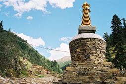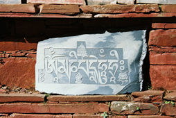 昔青寺的宝塔 玛尼石上刻着六字大明咒:?玛呢呗咪?。