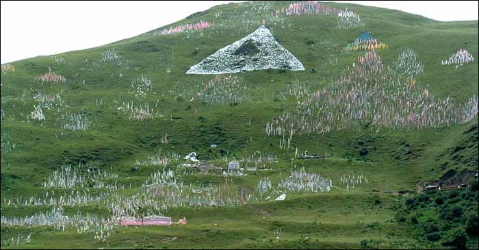 塔公的雅拉神山,从草原拔地而起,巍峨壮观,终年银装披挂,群云缭绕,与广袤的绿色草原和金碧辉煌的塔公寺相衬托,展示了一幅秀丽的高原风光。夏秋两季草原山花烂漫、碧水悠悠,牛羊马群、帐篷和寺庙塔林相交织,呈现出绮丽斑斓的迷人景色。