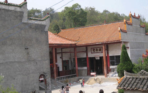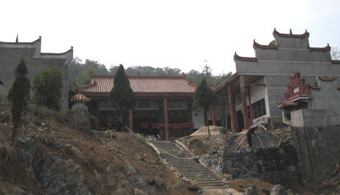 从永丰出发,车过永(丰)金(溪)公路旁的金坪铁市场,往右拐就进入燕岩村。燕岩村的水泥公路尽头是茅蔸冲,再沿一条沙石公路翻过山坳,就可看到新庄水库及周边山村壮景。沿山坡往北走不到300米,一座茂林修竹环抱的殿宇就出现在眼前。