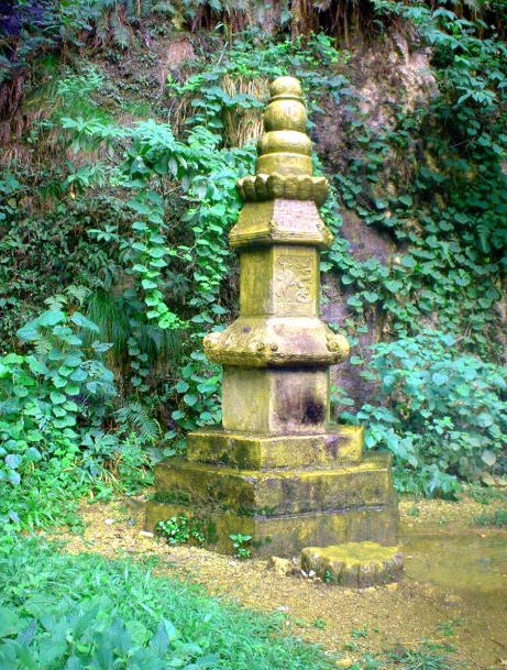 山门之内,有一“滴水泉”,泉水由插入崖缝之青竹小管涓涓注入巨型陶缸,清冽甘美,冬夏不绝。寺僧说是观音所赐“甘露”,饮以可医百病,香客多有信者。往昔,缸旁挂有长柄竹勺,小如酒盅,可自由取饮。