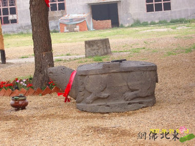 在大雄宝殿后、大悲阁前,有一座由七块石头(含基座)垒成的、高丈余的小石塔。基座石上,刻有:"大明天顺□年立"字样。可惜,1950年随寺庙被毁,小石塔亦被拆掉。