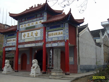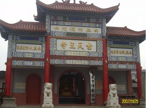 娄底市郊涟滨乡清潭村的涟水河畔,有一座历史上著名的古刹——镇南山天王寺。该寺始建于北宋乾德二年(964年),主体建筑有伽蓝殿、关圣殿、大雄殿和大佛殿,占地面积9800平方米,整个建筑以方石为基,圆石作柱,青砖砌墙,翘角重檐,雕梁画栋,掩映在苍松翠柏之中,甚是气派。极盛时期,僧侣达百余人。