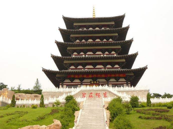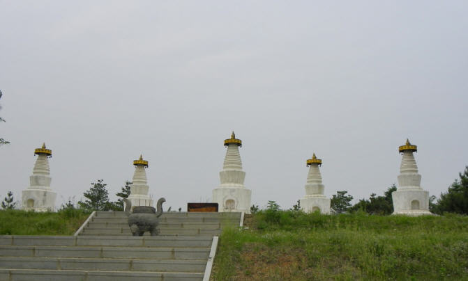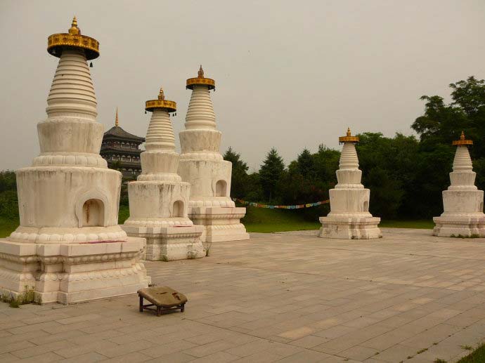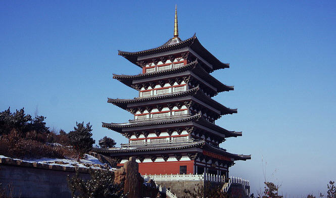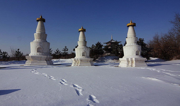 万佛塔为中华寺主要建筑之一,塔身高38米,共分上下五层,殿内供奉东西南北中五尊镏金大佛。宝殿落成后,是东北地区最大的修行礼拜场所之一。