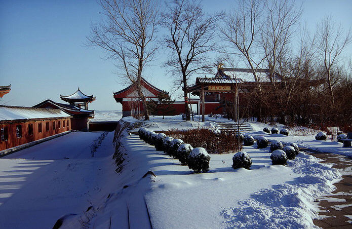 东北佛教文化中心之一的中华寺内有大雄宝殿、天王殿、伽蓝殿、地藏殿、文殊殿、普贤殿、钟鼓楼七大佛教圣殿。殿内壁画色彩艳丽,造像细腻逼真,典故传说扑面而来,不用文字叙述亦可读出端倪。