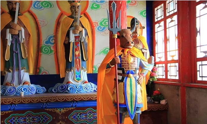 1997年农历4月26日,五台山望海寺的觉能法师经人介绍来到牛头山。从山顶放眼望去大石桥市与海城市尽收眼底,东边是花果山、西边是粮米川,山势平缓,连绵起伏,满山青翠,驻立山顶,又格外有一种心静安宁豁然开朗之意。觉能法师认为此处风水极佳,就立刻拜十方诸佛菩萨,立志要重建牛头山双泉寺,把牛头山双泉寺建成一座佛教圣地,护国佑民、佛法久驻,并立下进山永久免费的大愿。觉能师傅发挥土木古建筑方面的特长,亲自设计图纸,到施工现场监工,呕心沥血,从不言苦。历经12年,终于建成了总面积5万多平方米,建筑物面积近2万平方米的双泉寺。其中气势宏伟的大雄宝殿,建筑面积2273平方米;全国规模最大的酆都城(十八层地狱),建筑面积5000平方米。