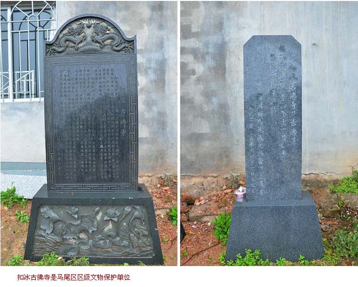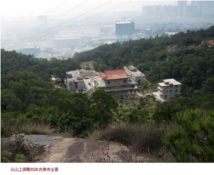 扣冰古佛寺,位于牛坑山天镜洞山南麓的峡谷中,据《鼓山志》记载,五代闽国天成二年(928年),闽王王延钧礼聘禅学大师扣冰和尚到鼓山涌泉寺坐禅讲学,称之为“王者之师”,后坐化鼓山,闽王为纪念扣冰和尚舍利,建扣冰和尚舍利塔墓与扣冰古佛寺于此,清顺治五年(1652年)元贤大师、光绪年间妙莲和尚两度重修,民国年间寺废。1998年,众信士为宏扬佛愿,踊跃捐款,重建扣冰古佛寺,令其重焕光彩。