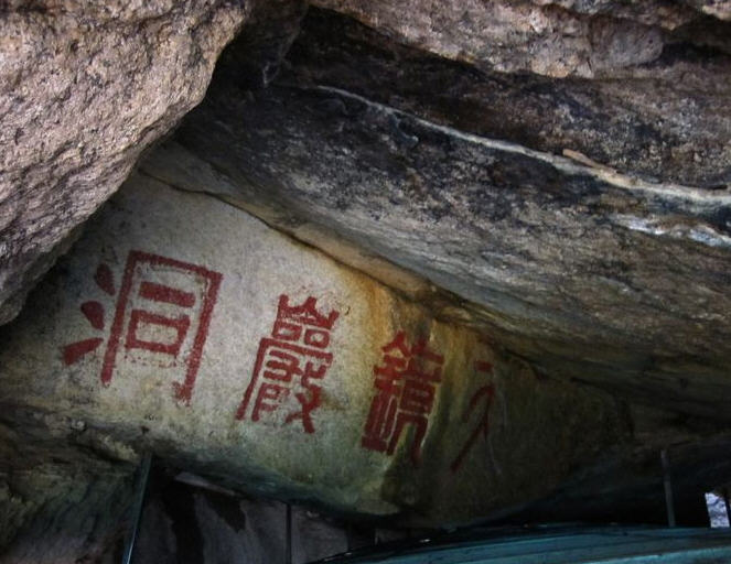 天镜岩洞,洞宽三米,深十米,洞口石壁的上方刻着“天镜岩洞”四字,认真端详,可以清晰地看出“天镜岩”三字凹凸有致、银钩铁划,确为古人镌刻,“洞”字却是朱笔淡描、平平无奇,显是现代人补上,画蛇添足、附人骥尾,显得不伦不类。