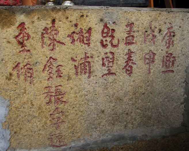 在洞口还有两处石刻,一处刻着“康熙戊申孟春既望湘浦陈钰、张字远重修”,可见天镜岩洞曾于康熙七年(1668年)农历正月十六日重修。另一处刻着“天镜存日月、风来共长鸣”,落款是“中华壬午年,郭功辉书”,估计是山友郭功辉老师于2002年所题。