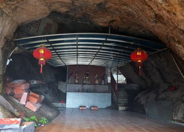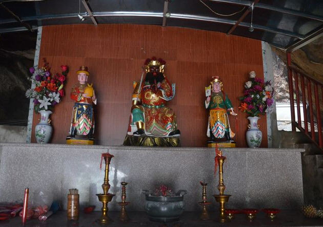 进入洞中,迎面是一幅神案,案上三尊神像,中间一尊金盔赤袍,满脸虬髯,右手擎一柄长剑,不知为何方神圣,左右分别是旗牌官与掌印官,看着倒像是个中军大帐。