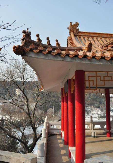 寺院建筑采用明清古建筑法设计,采用现代工艺技术营造,历时3年零9个月竣工。寺院建有东西山门两座,东山门朝阳旭日升,西山门暮送夕阳落晓,曦与晚霞交相辉映,伴有晨钟暮鼓,一派佛国胜境景色。