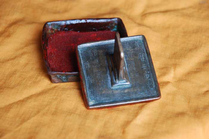 这就是明万历年间,宝庆府颁赐的“佛法僧宝”手把二寸方正匣藏,铜质印钤,历经400余年,代代相传至今。