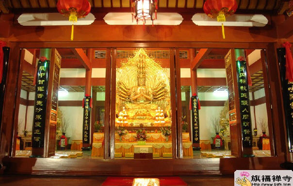 旗福寺是连江县较为古老的寺院之一。据县志记载始建于元朝延佑六年(公元1319年),原为道观,后改为寺。乃一元朝古刹。(福建历史上有前旗后旗之说,前旗山在连江有旗福寺,后旗山在闽侯有万佛寺)。本寺系伽蓝菩萨感应道场。菩萨感应事迹不胜枚举。现存有伽蓝菩萨灵签,广度芸芸众生。古人云:祈梦要到福清石竹山,抽签就到连江湖里找旗山。