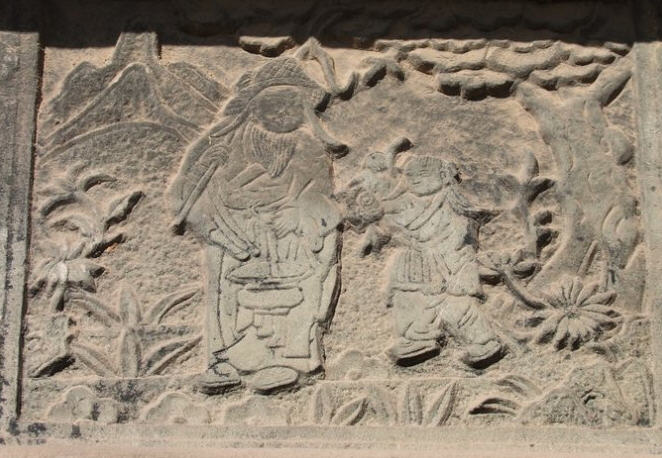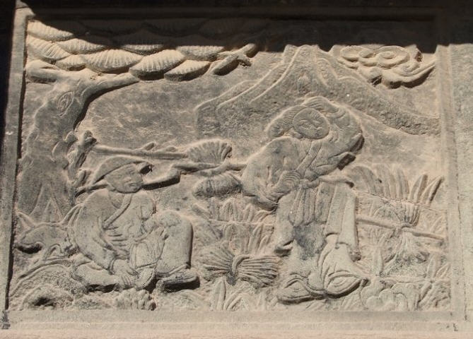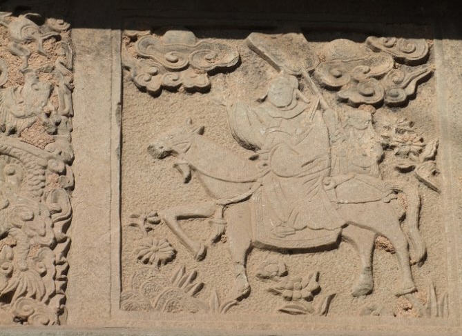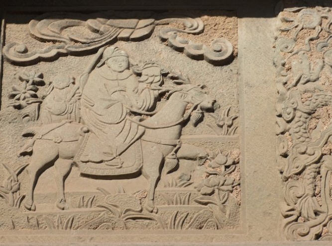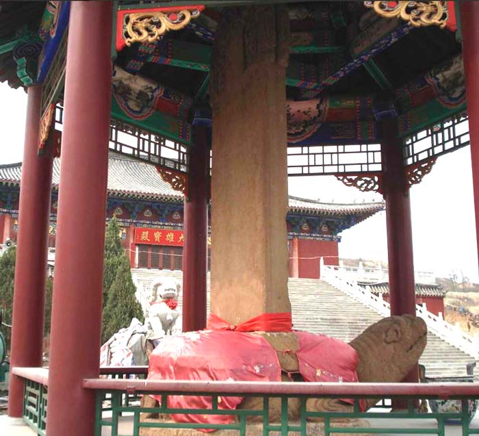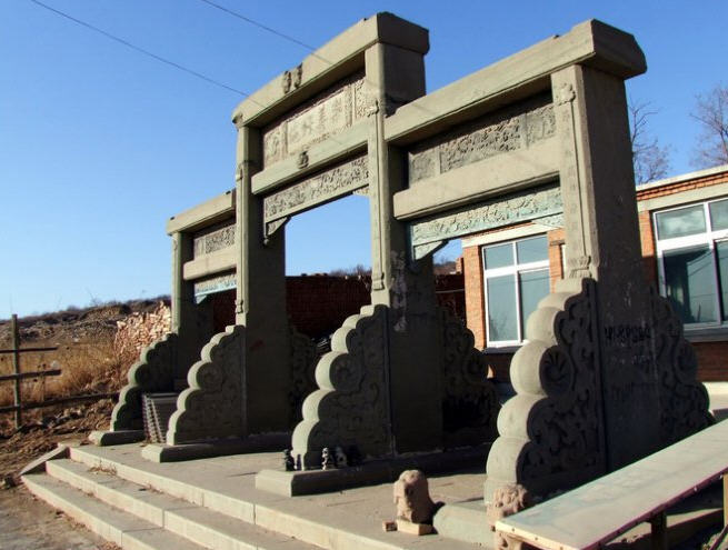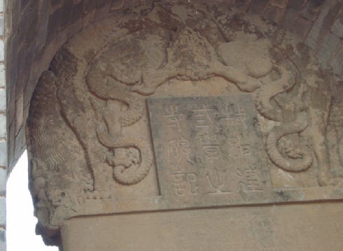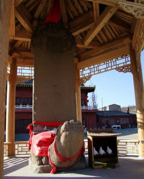三学寺碑 位于朝阳市北郊狼山东麓,绿砂岩质。由螭首、碑身、鳌座三部分组成,通高3.42米,螭首呈长方形,上雕四龙,龙首向下,张嘴吐须,碑额阳文篆书:“特改建三学之寺碑记”九字。碑身高2.17米,碑阴天宫阳文篆书“供给三学道粮千人邑”三行九字,下刻施银粮者姓名。鳌座长2.58米、高0.29米,龟伸长颈,口微张,造型生动逼真。