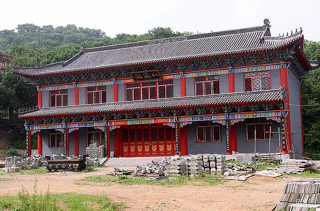 寺中的大雄宝殿里供奉着三如来,中间供奉着释迦牟尼佛,东方供奉药师佛,西方供奉着阿弥佗佛,西侧供奉着文淑和普贤菩萨以及五百罗汉,后边供奉着大慈大悲的观世音菩萨。