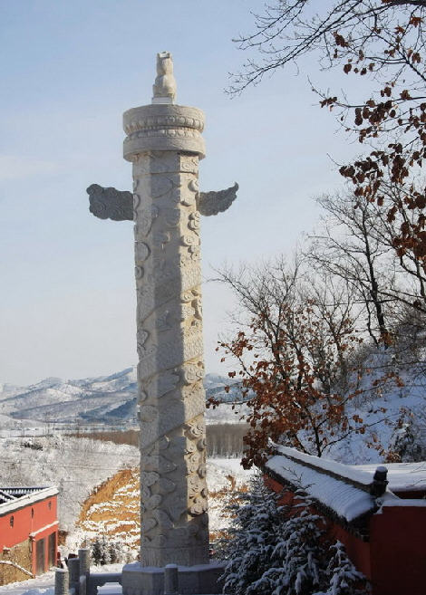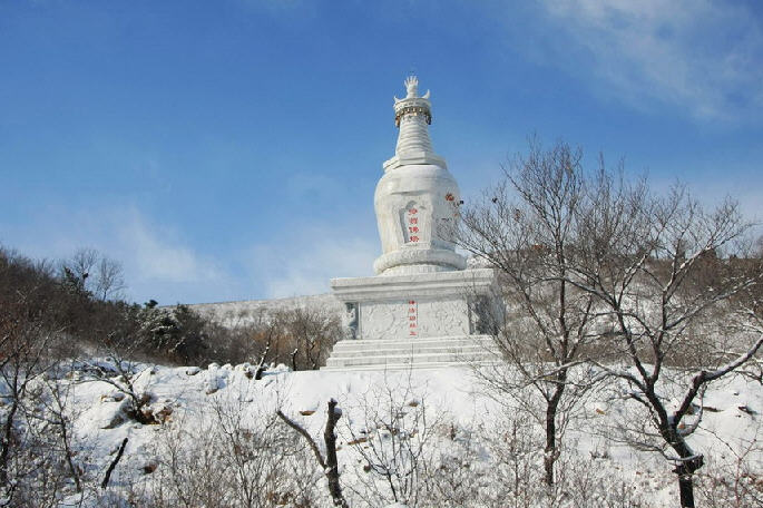 沿汉白玉台阶拾级而上,为二层六角攒心式凉亭——朝旭亭。此亭位于长寿山景区中心,被列为省级重点文物保护单位的康泰真墓碑便坐落于此,虽历经近千年风雨,两千多字的阴刻铭文仍清晰可辨。康太真,利州人花务村人(今喀左县大城子镇洞上村),俗姓康,道号太真,亦称云峰真人,是我国金元时期颇具影响的道士,仙风道骨,美髯飘逸,寿享92岁,一生传道70余载,弟子达千余人,长寿山因为有了云峰道长而声名远震。长寿山顶的青石之上,有两处深两尺、长一尺、形如人脚的仰天洞穴,据说是康泰真年少时所遇传道神仙的足迹,故称之为——仙人脚印。而长寿山上树种繁多,且棵棵枝繁叶茂,正是由于康泰真人一生传道、广收弟子之功。据说康泰真人每收一名弟子,不要任何回报,只要求他们在山中栽一棵树木来表学道之真诚。时光流逝,岁月如梭,曾经的小树早已长成苍天大树,而康泰真人留给后人的不光是满山的古木参天,更是我们对他的敬仰与怀念。