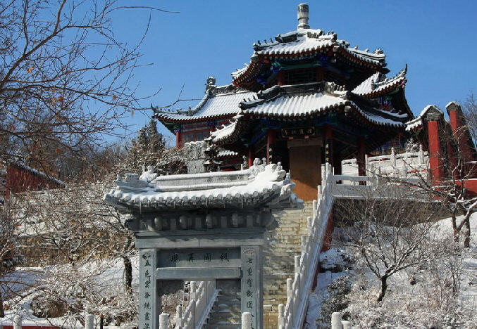 整座寺院,依山而建,错落有致,步步登高,呈阶梯式排列,且被环形山团团围抱。院中殿阁辉煌、气势雄伟,副副楹联,光灿夺目、煜煜生辉,实为辽西地区重要佛教文化景观。