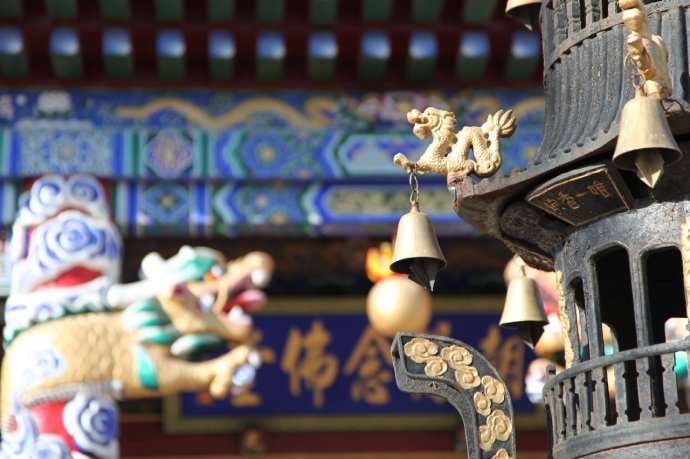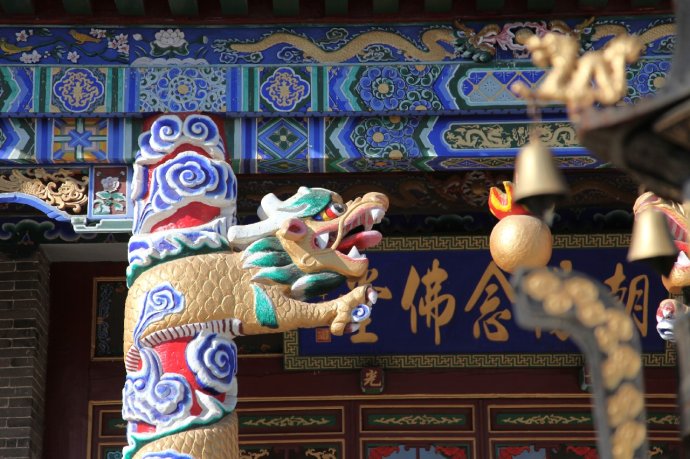 这座庙宇由5个大小院落组成,占地总面积为27780平方米。寺内中间有一座两层大殿,名为“正殿”。南为“天王殿”,西南为“老爷殿”,北为“十八罗汉殿”,东西均为“佛经殿”。除此,寺内还有“佛爷仓”、“大仓”等38间。全寺共有楼堂殿阁153间,四周被2.3米高、750米长的蓝砖红油大墙所围。