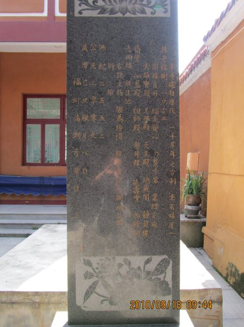 位于水部龙庭境。相传建于唐贞观年间,屡经兴废,现存的寺宇系清初所建,有天王殿、大雄宝殿、小佛厅、方丈室、放生池等。殿内有观世音、千手千眼佛、十八罗汉等泥塑金身。“文化大革命”中,寺宇被占作为工场和民居,1980年落实政策,归还大部分寺宇,1983年修复。寺坐北朝南,四面围墙,入门为天井,旁有一株千年杉树,刻有“唐将程咬金亲手种植”的字迹。第一殿为五间排的天王殿,现仍为民居。殿后有一个100多平方米的天井,两侧披榭为四个小殿。第二殿为大雄宝殿,内供释迦牟尼和十八罗汉。面阔三间,进深二间,双坡顶,穿斗式木构架。第三殿为地藏殿,内供地藏王菩萨,殿东侧有一口鱼池,长45米,宽21米,面积945平方米,经常有人来这里放生。寺内有古井两口,泉水清澈,相传井深能通达马尾的海潮寺。全寺总面积2000平方米。