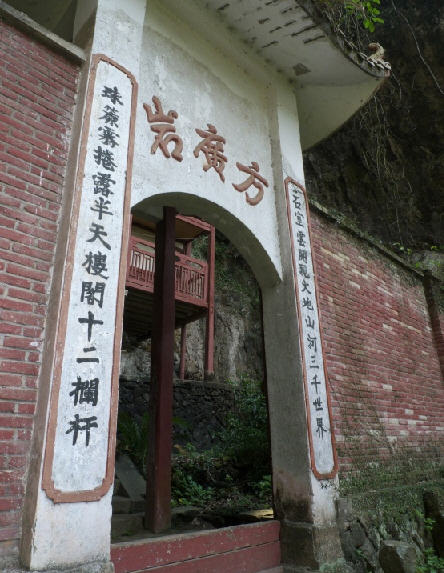 早期的方广岩寺,筑台构佛阁三层,左右禅房、方丈室、香积厨,皆庇岩下。明清时期再建天泉阁、观音阁及仙君殿。元学士林泉生题寺联:石室云开,见大地山河三千世界;水帘风卷,露半天楼阁十二栏干,明尚书林如楚题匾额:“天泉阁”,联与匾现还保留在方广岩寺内。