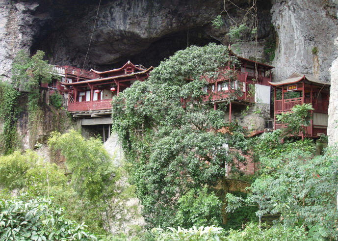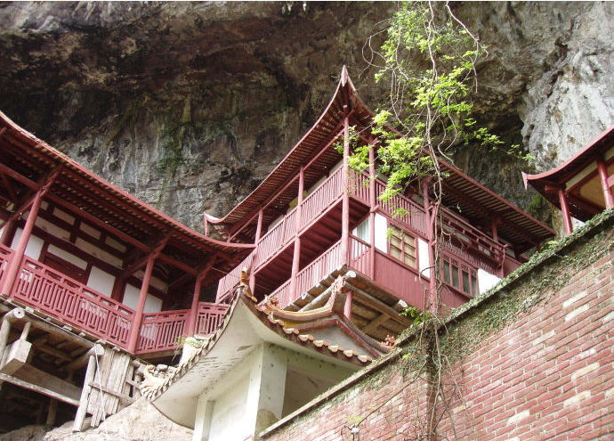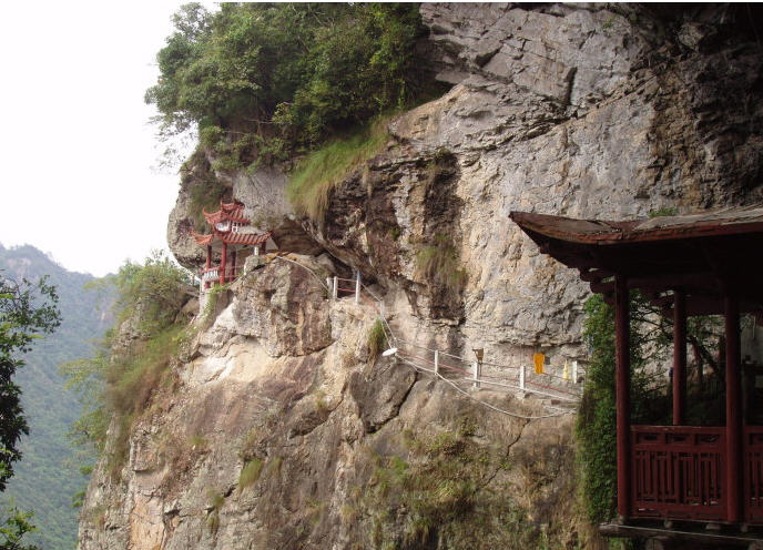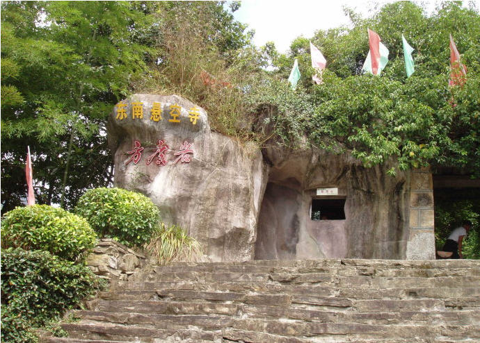 建县于唐永泰二年(766年)的永泰县,境内有许多文物古迹,新近名列省级文物保护单位的方广岩寺,便是其中一处,由于其天泉阁临渊架构,被称为东南悬空寺。