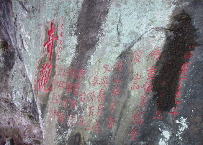 方广岩寺不大,所处位置也并非通衢大道近旁,但在近千年历史中,引得名士官宦、百姓信士络绎不绝,上山的小路边上,留下许多不朽题刻。前人的题刻丰富了方广岩寺的文化含量。