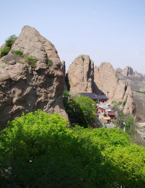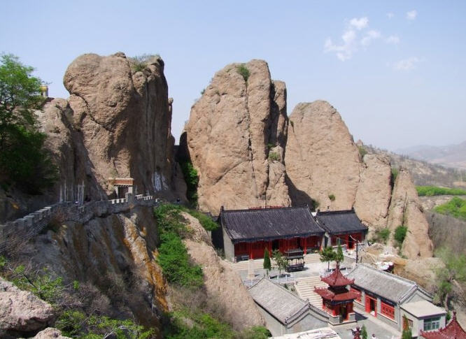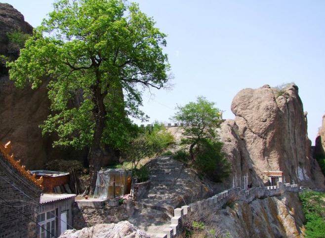 翠岩山位于锦州市区西北17公里处,在平坦大地的尽头, 一组群峰拔地而起,石壁如刀峭,嵯岈嶙峋,陡峭秀丽,好似一个由大自然用鬼神神功特意制作的大盆景。翠岩山石呈褐绿色,夏秋之季,青苔密布,峰峦苍翠,景色如画。翠岩山原名嵯岈山,俗称丫巴石,海拔210米。因空旷幽静,便成为僧道修寺建军庙,潜心修炼的好场所,早在汉代就有僧人在山的东麓建军寺庙。辽道宗大康十年(1084年)锦州大广济寺志训和尚在山下重修庙宇清静寺,建军正殿三楹,同门一楹,殿内塑宣懿皇后肖像。乾统元年(公元1101年)天祚皇帝耶律延喜下谕重修清净寺,改名清胜寺。殿内塑承天太后、宣懿太后、洪德太后(天祚皇帝生母)三座肖像。殿前增建军钟鼓楼,开凿石栈道,直通承天太后梳妆台,上建军一亭,命名神威亭。明正统年间,锦州左屯卫都指挥李贞将山名改为翠岩山,清胜寺也改为翠岩山寺了。明成化年间,儒将都指挥王锴手书“翠岩山寺”雕刻在山崖上,如今,划日的寺庙无存,只有翠岩山寺四个大字还依稀可见。在翠岩山寺西北角半山腰有一座寺庙玉皇阁,建于康德三年(1936年),玉皇阁有“玉皇阁”三个字,第一级台基为山门,门楣上有“玉皇阁”三个字,第二级台基有一个六角石鼎,第三级台基是玉皇阁正殿,大殿三槛,供奉太上老君、玉皇大帝、释迦牟尼三圣。院内古枫树苍劲,实属罕见。近些年,有僧人在此修炼,翠岩山寺也正在修复之中。