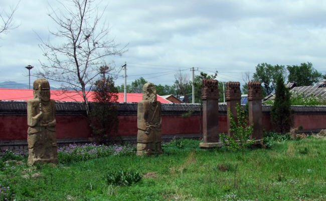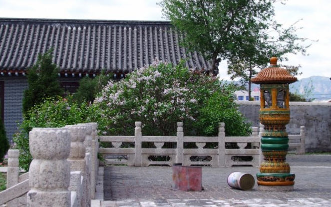塔后有古刹崇兴寺。在民国和伪满年间,该寺尚保存完好。当时有山门一间,小堂一间,佛殿五间。殿内塑释迦牟尼等佛像五尊,左右配有神将。佛前悬有刻着“双塔崇兴寺造吉日立”的小风铃。殿外挂道光二十六年的铁钟一口。传说此钟在民国五年修缮石坊的道路时,在马路正中出土。前还有古槐、榛柏、 古松数株,树下列有古碑四座。四座古碑由东至西的顺序是明代的正统十年、嘉靖十八年、清代康熙十一年、嘉庆七年。院内中门之前,曾陈放一六角台石,六面各刻有莲瓣,再上雕镂着衣冠楚楚的六个人物图案,每人的背部刻灯笼一个,六人以手相挽作围拢状,形成圆柱,顶端又刻石灯笼一个,宛似屋顶。通称六角六人灯笼。全高8尺5寸,其中人物高2尺3寸。据专家推断,石灯笼应为明代或更早的遗物。崇兴寺庙殿及其附属文物在1960年尚且保存完好。可惜在“文化大革命”中却遭到严重的破坏。寺庙现已全部恢复,香火旺盛,终年不断。