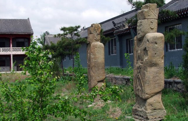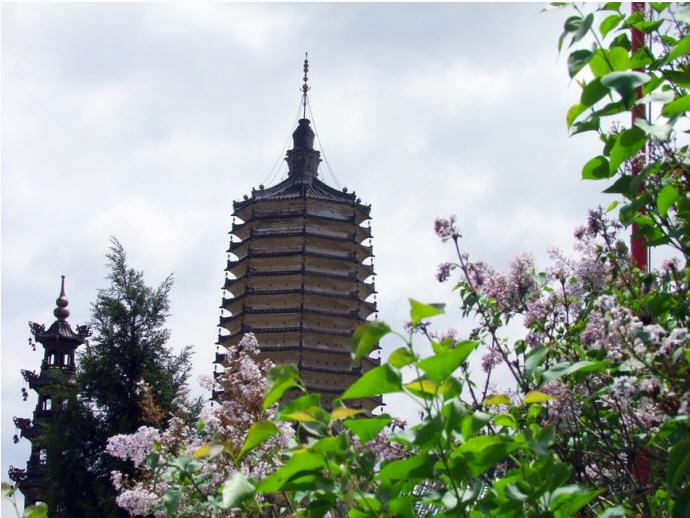双塔位于北镇城东北隅,为国家级重点文物保护单位。据专家考证,创建于辽代,后经元、明、清几代重修。两塔东西对峙,形制相同,为砖筑八角十三层实心密檐式。塔基为石条砌筑。每边长7.3米,高3米。是明代李成梁镇守辽东时,为增加塔身安全而包砌的。又一说是清代光绪年间所包砌的。塔座上有砖砌斗拱、曲水万字栏板和仰莲。塔身八面多有拱龛,中雕坐佛,龛外两旁各立一胁侍,上有宝盖、飞天等装饰图案,每角刻一力士,作负重形态。另有腾龙、舞凤、伏狮、游鱼等纹饰。底层檐下有仿木砖雕斗拱,为双抄五铺作。往上为十三层塔檐,各层均用砖砌迭涩出檐,逐渐内收。在八角攒尖式的塔顶上建有莲座、宝瓶、刹杆,顶端装宝珠,是为风磨铜所制,色泽如金而其价贵于金。传说“风磨铜可减弱高空风力。故皇家高大建筑上的顶端饰件和塔顶的宝珠多用之”。今城内双塔的宝珠依然金光闪烁,光彩夺目。加之二塔耸入云霄(东塔高43.85米,西塔高42.63米)。十里之外即可见到双塔的雄姿,在蓝天白云的映衬下犹如一对玉钻钻天。因此,“禅塔双标”自古即为广宁八景之一。如果西登闾山绝顶东望城内双塔,在云雾中时隐时现,依稀可见,故又有“双标塔影”之称。