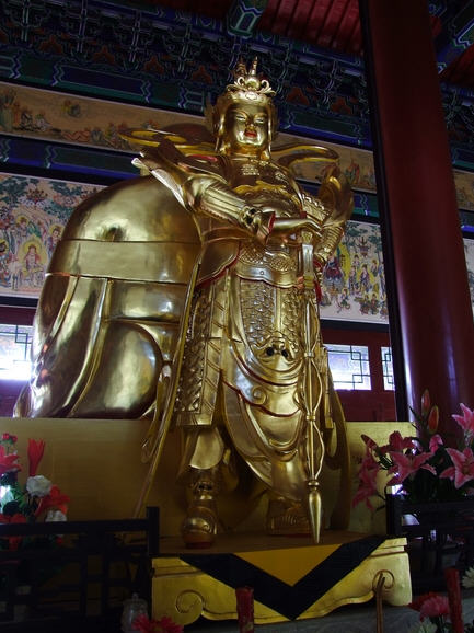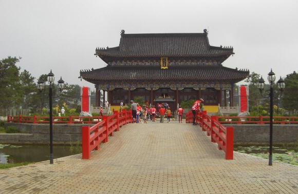 华圣寺是一座以供奉观音为主的修行到场。进得山门,几只鹭鸟盘旋于寺庙的草丛之中,给寺庙凭添了一种瑞祥之气。寺庙显得很大气,建筑错落有序,几层大殿雄伟壮观。环绕寺庙的荷花池,荷花盛开,白的,洁白如玉,粉的,宛若朝霞。硕大的荷叶碧如翡翠,红色的草鱼穿梭其中。