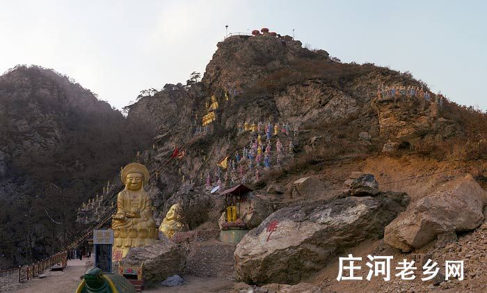 千佛洞:又称朝阳观,位于庄河天门山景区内,始建于辽金时代,距今有千余年历史,据传洞中曾有佛像千尊,故称 “千佛洞”,是辽南最古老的洞穴寺庙。现在还能看到一些残缺的石雕佛像。主洞穴分上下两层,下层供奉佛教诸佛,上层供奉道教诸神仙。洞穴外面还建有如来、观音、弥勒、文殊、药师等佛像。