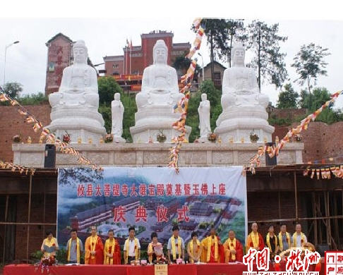 释妙开法师宣布:湖南攸县大菩提寺大雄宝殿正式奠基。到场有关领导携手共同为攸县大菩提寺大雄宝殿培土,在震天的礼炮声、漫天的礼花带、持续不断的掌声与祝贺声中,攸县大菩提寺大雄宝殿的建设将成为攸县的一个佛教丛林道场和文化研究的一个重要阵地,为攸县宗教界打造一颗新亮点。
