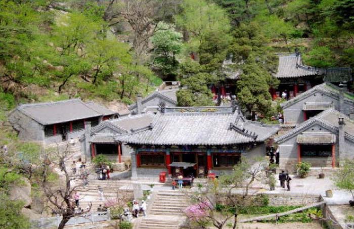 据金人王寂在《鸭江行部志》中记载,“壬辰大风雪。对面不辨牛马,抵暮稍霁。扶杖游龙泉谷。谷去寺三里而近。扪萝梯石,困于登陟,左抱右掩,松柏参天,殆非人世,但恨阴霾障蔽,不得穷幽极胜。泉上,破屋数像,残僧三、四,颇习禅定,相与坐于石壁下,少顷乃归。因留一绝句云:‘我来连日苦风霾,不见千峰剑戟排。要识玉山真面目,雪晴明月射苍崖。’即归,半途望南山西崦,松桧间,悬崖石宝,户牖如蜂房。问其僧,曰此休粮谷也……”由此可知,寺在金朝规模尚小,并已残破,寺僧不多。明朝以后开始兴盛,嘉靖三十七年(1558年)宗斌和尚建如来堂,隆庆五年(1571年)改建如来堂,又建后堂。万历九年(1581年)奉敕重修山门,十二年(1584年)建藏经阁,二十五年(1597年)建东庵。后几经增建、扩建,到清康熙年间,已形成现在的建筑布局,整个寺院依山势修建,前低后高,半依峭壁,半筑短垣,坐落在幽壑丛林中。