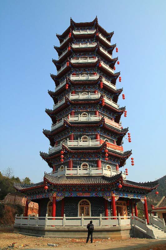 严格地说新庙是建在山腰。因国道新线地基抬高故不觉其峻拔。国道东北通浏阳,主殿则横向排列。围墙尚未立,因此车行国道,便一览能收大雄宝殿外部全貌。