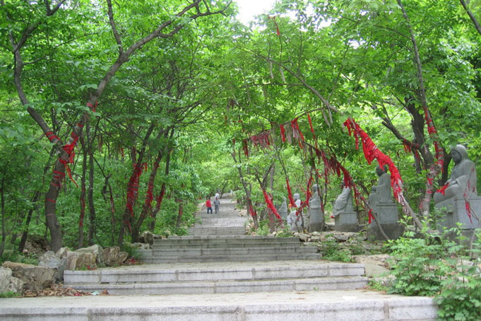 在大连开发区北面大连大学西侧大黑山起伏的山岭里,有座可称为“辽南第一名刹”的观音阁。山路曲径通幽,庙宇巧妙地利用了半山腰的一个天然石窟,四周是葳蕤的森林,前方有一条浅浅的沟塘蜿蜒着通往山下。每年早春,当春风刚刚唤醒草木的时候,等了一冬的映山红就一簇簇一丛丛在林中盛开了。紧接着,槐树开白花,香阵重重;桑葚结红果,如火如荼。山泉丁冬,百鸟鸣啭,一派天赐仙境。而秋天,一场薄纱般的轻霜掠过之后,枫吐丹红柞染金,苍松更显祖母绿,这里的五花山更是叫人流连忘返。