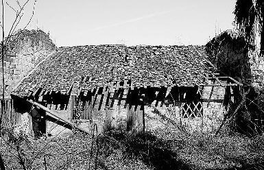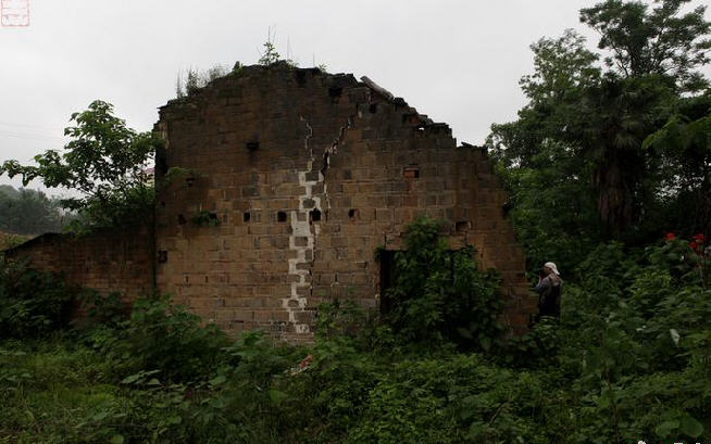 肖立冬老人的房子的所在,就是庆霞寺的旧址。不是矗立在半山腰,也没有恢弘的庙宇,仅有的是四间破败的房子,这就是目前能看到的残迹,散落的砖瓦、剥蚀的墙壁,在一处杂草丛中,矗立着这样一座断垣残壁。屋内也已经杂草丛生,打碎的瓦片随处可见,墙壁的表层也早已脱落,像一个被撕裂的伤口,这么多年以来一直在淌着血。如果不是有诗文佐证,有故事传承,我们很难想象得出,这块荒草丛生的地方,曾经香火鼎盛。
