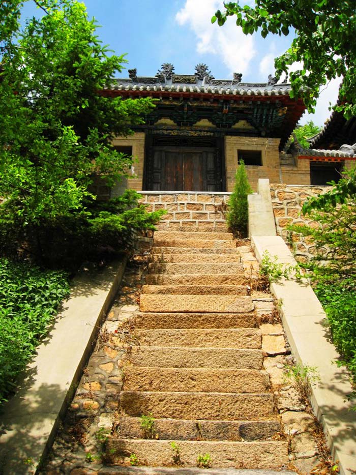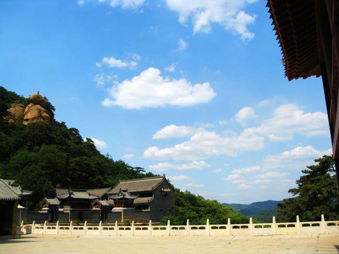 转过大殿,可以看见比较古老的建筑。首先,看到的是天地楼,它是千山唯一一座芜殿式庙宇建筑,砖木结构,面积达2l平方米,东西各有小门楼一座,颇具小巧美之特点,居高临远,美不胜收。