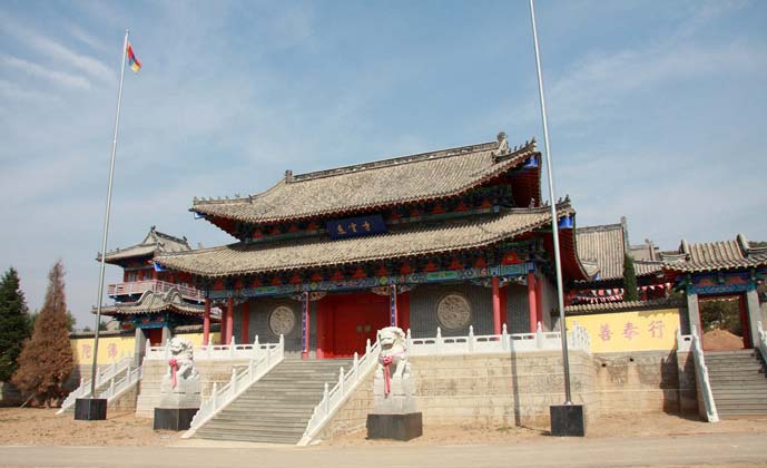 在罗布桑却丹纪念馆东侧重建一座规模宏大的慈云寺。大雄宝殿是双檐歇山式仿古建筑,面积为900平方米。正中是4.5米高释迦牟尼等三尊全铜坐像和3米高阿难、迦叶站像,东西两侧是1.6米高18罗汉坐像。