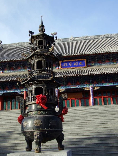 站在翠绿满坡的元宝山上,俯视慈云寺,绿树环抱着一片片青砖碧瓦的寺院,清净悠然,心情为之一振。早上四点,即可听见从寺院中传出沉隐憨畅的钟声,从无间断。古书中记载名刹总用“晨钟暮鼓,青灯黄卷”形容其为庄严神圣之地。如今的慈云寺就是这样一番景象。诗人鲁明廉在元宝山上看到这一景象,诗兴大发感慨万千,于是吟成一首七律: