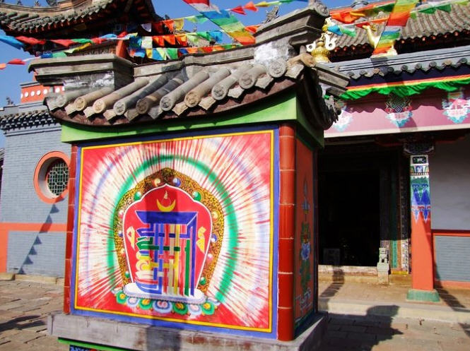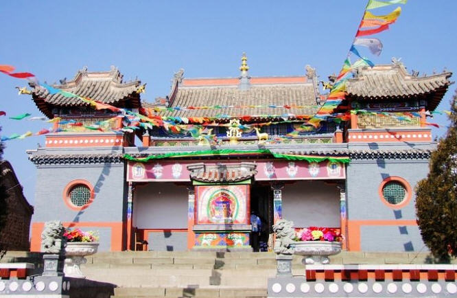 该寺为藏式建筑。主体建筑由南向北依次是山门、正殿、后殿和东西配殿。山门面阔三间,砖石结构,硬山式建筑。由于岁月侵蚀,未维修前,该寺正殿顶,前、后坡瓦垅多有脱落,前、后墻体也部分破损;殿内壁饰各种彩绘和诸神图案,彩绘破损严重;殿顶和钟鼓楼皆已破损,殿后墻部分倒塌。
