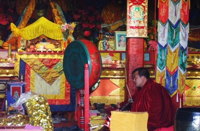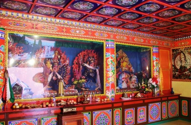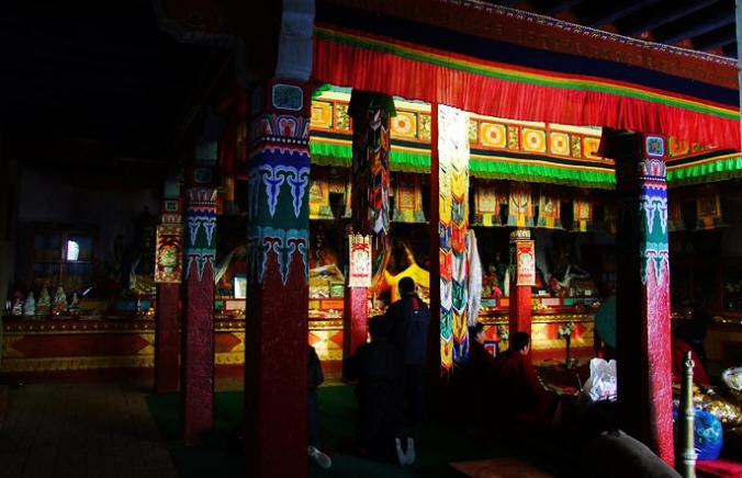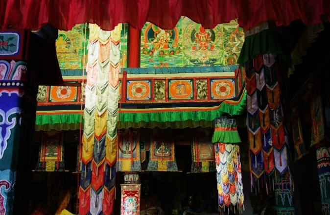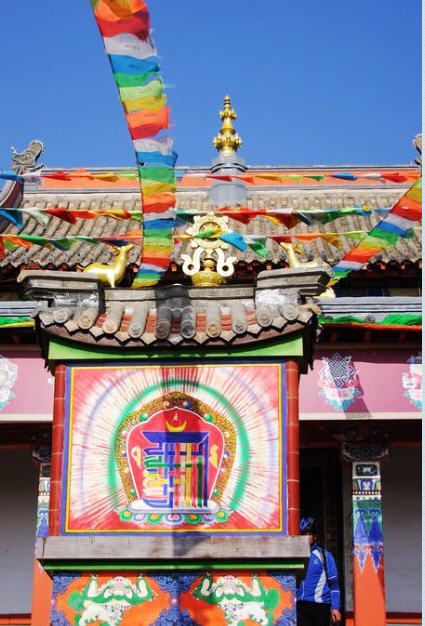 被潺潺溪水、巍巍苍山揽入怀中的广法寺,以其整体的藏式建筑风格,独具特色的正殿壁画、石雕等,焕发也特有的魅力。(李冰)