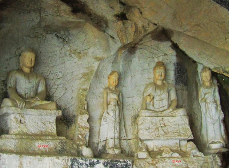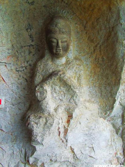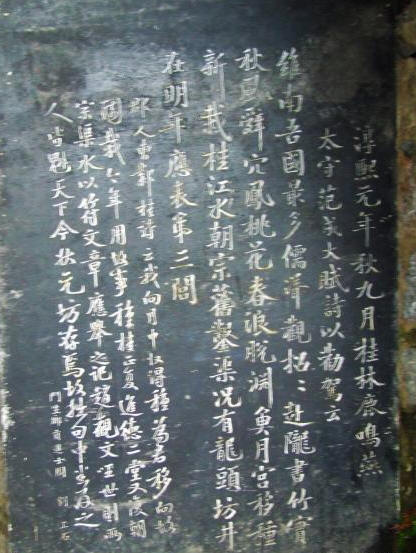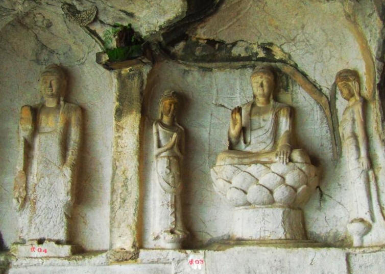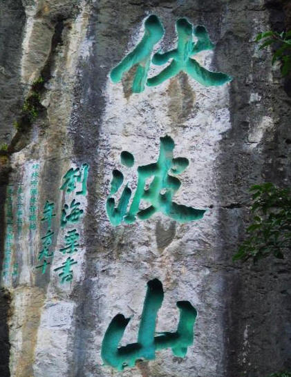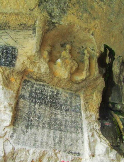 【伏波山摩崖造像及石刻】广西壮族自治区文物保护单位。在桂林市区伏波公园内。现存摩崖造像45龛219尊,多为唐大中年间(847~859)复兴佛法后作品。有明确记载年代者为唐大中六年(852)宋伯康观音造像。观音头戴繁密的花冠和宝珠,胸前佩带悬铃,遍身挂缨珞,左手略举,掌心托珠,右臂下垂,手持净瓶。最具代表性的是卢舍那佛造像。造像为1龛7尊,即1佛、2弟子、2菩萨、2供养人。佛像高0.6米,面像浑圆,神态庄严,左手轻轻按膝,右手抬起作说法状,结跏趺坐仰覆莲台上,身后有火焰状背光。左右弟子迦叶、阿难,侧身合掌向佛。二胁侍菩萨戴冠佩环,一手下垂,一手抚胸。二供养人,身着俗服,双手合十。造像生动、自然,接近现实。伏波山石刻112件,其内容多为赏景题名、题记、题诗、题榜、填词、营缮记事之作,兼有绘画艺术作品。石刻主要集中在还珠洞中,少数在听涛阁一带。现存最早的为唐咸通四年(863)赵格、刘虚白题名。较著名的石刻有李师中的《蒙亭记》、黄邦彦的《重修蒙亭记》、米芾与潘景纯题名,以及方信孺刻《米芾自画像》。另有大量的应景抒情诗,如章岘、崔静还珠洞唱和诗,任续、吕愿忠还珠洞唱和诗,朱?颜还珠洞诗,梁安世试剑石词,包裕等试剑石联句等。还有宋钟传的"桂州静江军"、杜易的"正夏堂"、清林绍年的"心迹双清"等榜书。