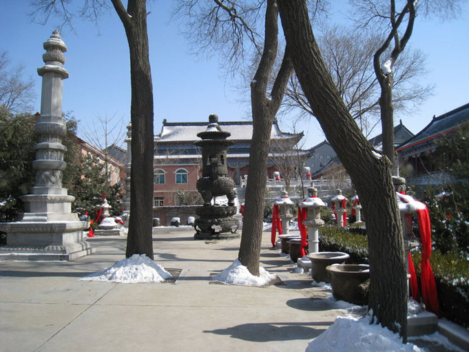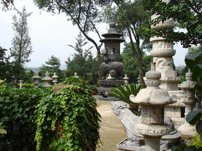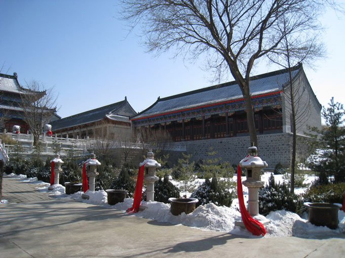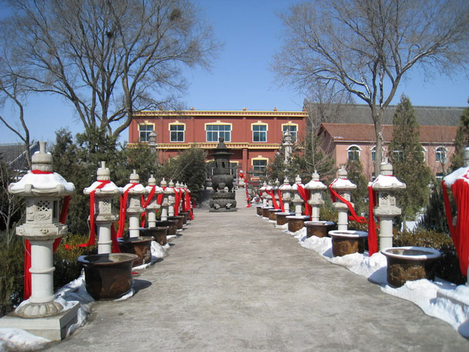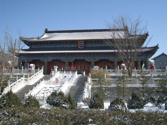 宝华寺:位于金州三十里堡宝石村(从大连出发在三十里堡下沈大高速往回走1公里,十字路口左转往里走,过铁路涵洞桥右转顺路前行)。宝华寺正在扩建(2007年6月),有三四座大殿在建,规模宏大。目前正殿为一现代建筑,供奉诸神。院内植物葱翠,石雕烛塔林立。