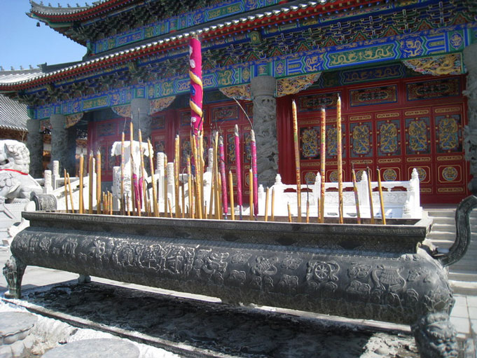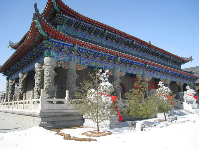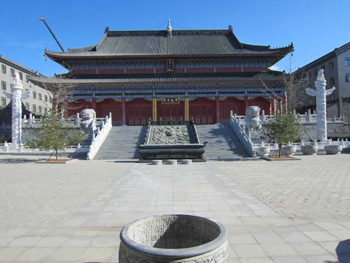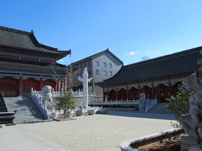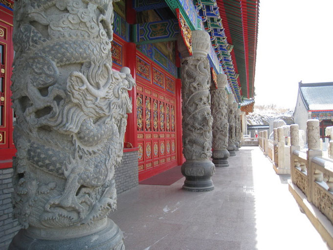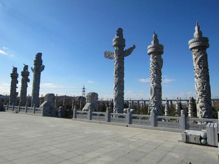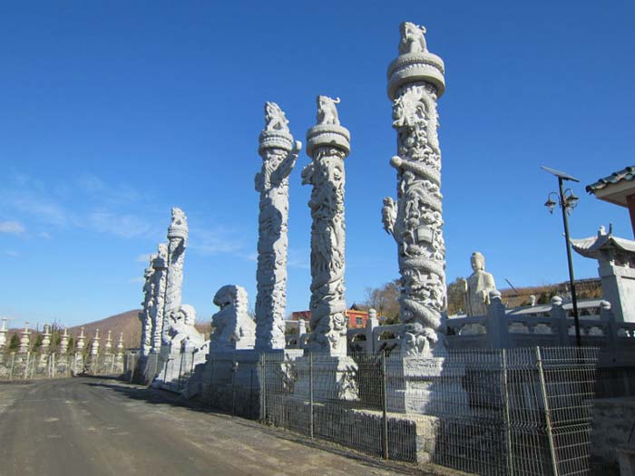 宝华寺规模特别宏大,就目前已经建好的寺庙规模来看,在辽南地区还没有哪个寺院敢出来与宝华寺一比高低。宝华寺不但规模大,在其山门前的广场上竟建有六根高大的华表和两处九龙壁,这不是一般胆量的人敢这么做的,看来咱们金州确实是卧龙藏虎之地,金州人不是一般的厉害!北京天安门城楼前后才各有两根华表,故宫里也仅有一处九龙壁,这些都是皇权的象征啊。当初大连星海广场修建了一根华表,在国内都引起巨大的反响和猜疑。